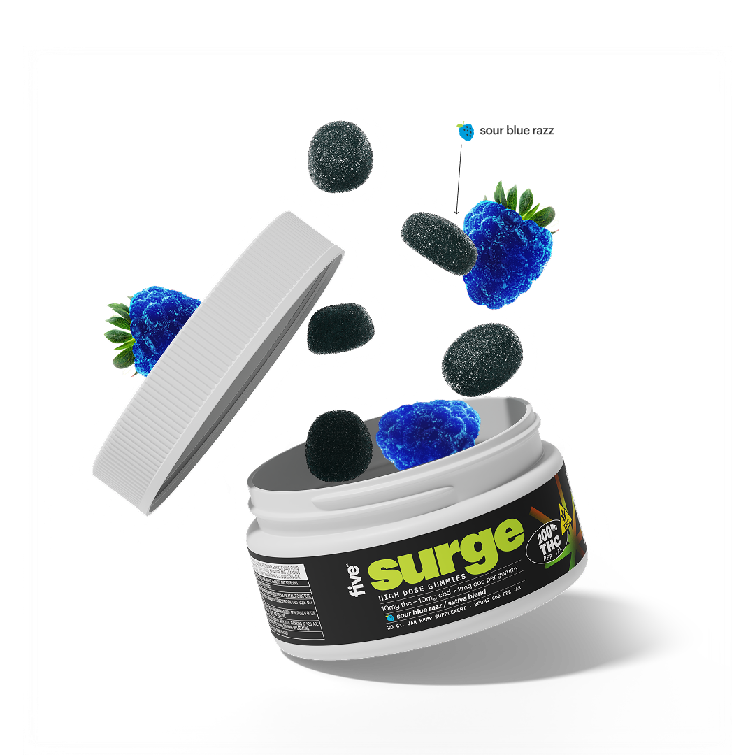 Our five surge 10mg delta-9 THC mood gummies deliver the high-lift you need to handle any social situation and get things done.
