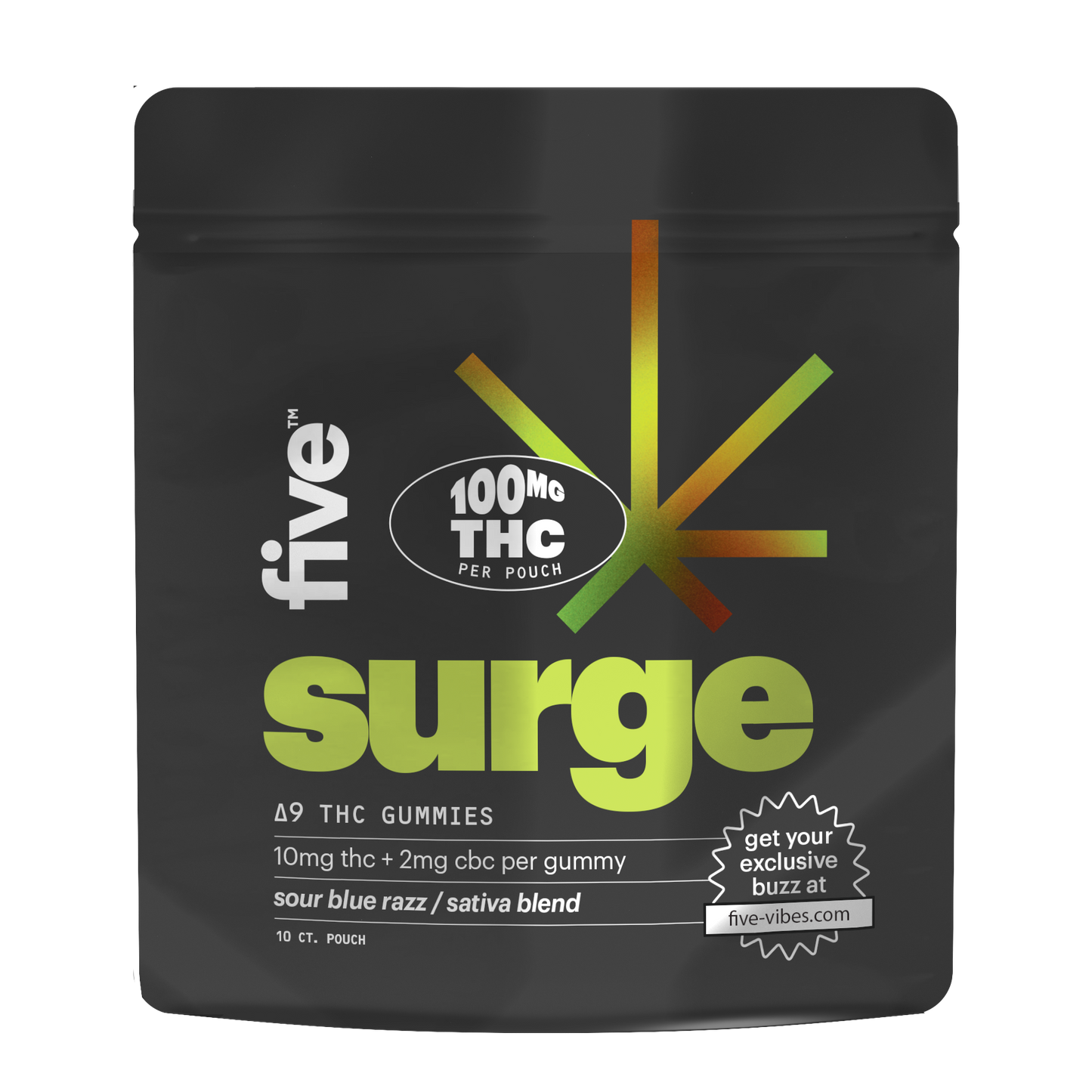 uplift the energy with a delicious dose of 10mg delta-9 thc, cbd, and minor cannabinoids. five’s surge gummies deliver dispensary-like effects that help you feel the high energy vibes.