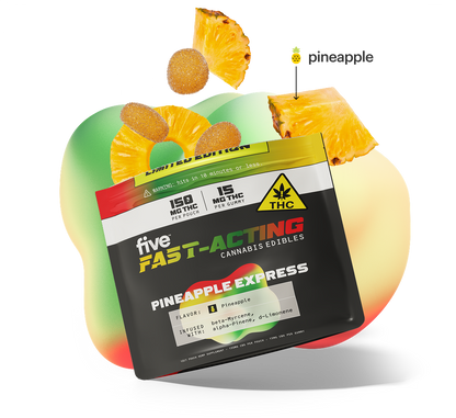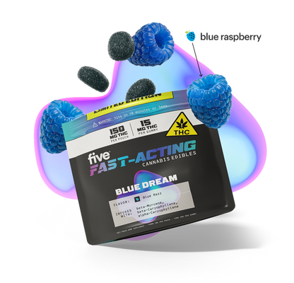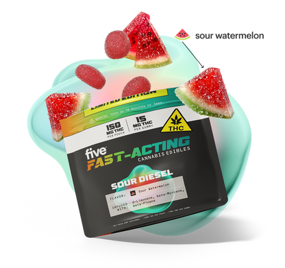 meet five's quick hits: not your average edible. infused with terpene blends and fast-acting technology that hits in 10 minutes or less.