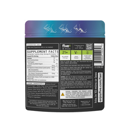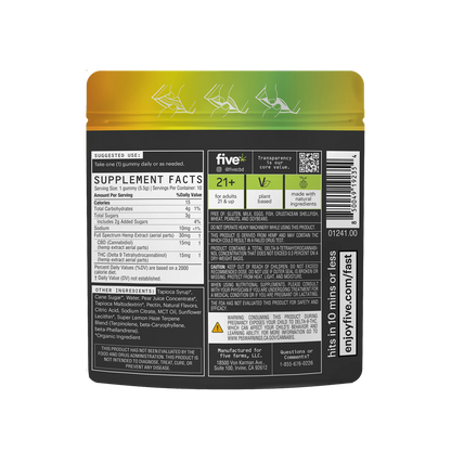 shoutout to the 2018 farm bill—our thc comes straight from hemp (same thc as marijuana), so five’s edibles hit just as hard as dispensary faves but stay federally legal, with states setting their own rules.