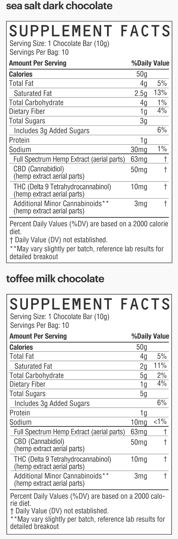 1x high dose sea salt thc dark chocolates | 1x high dose toffee thc milk chocolates