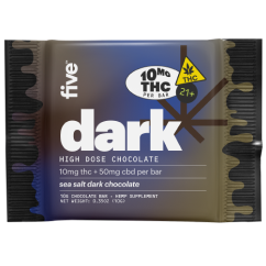 double up on five’s high vibes—now in a 10mg delta-9 thc dose. same rich sea salt dark chocolate flavor, with even higher vibes.